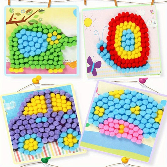 2/4pcs 6.3in*8.3in Colorful Pom-Pom Painting Animal Transportation DIY Art Decor Handmade Craft Painting Supplies Unique JXB