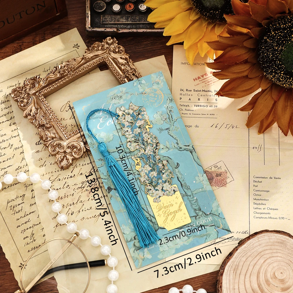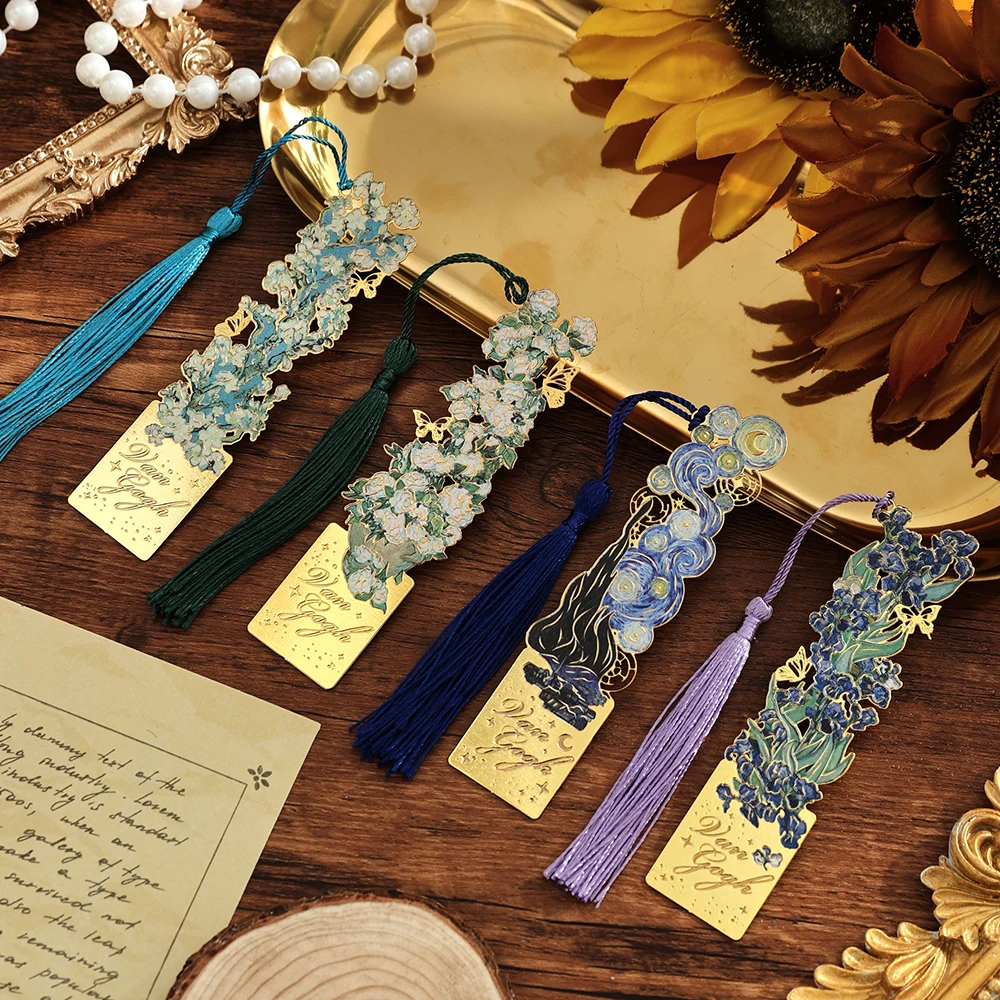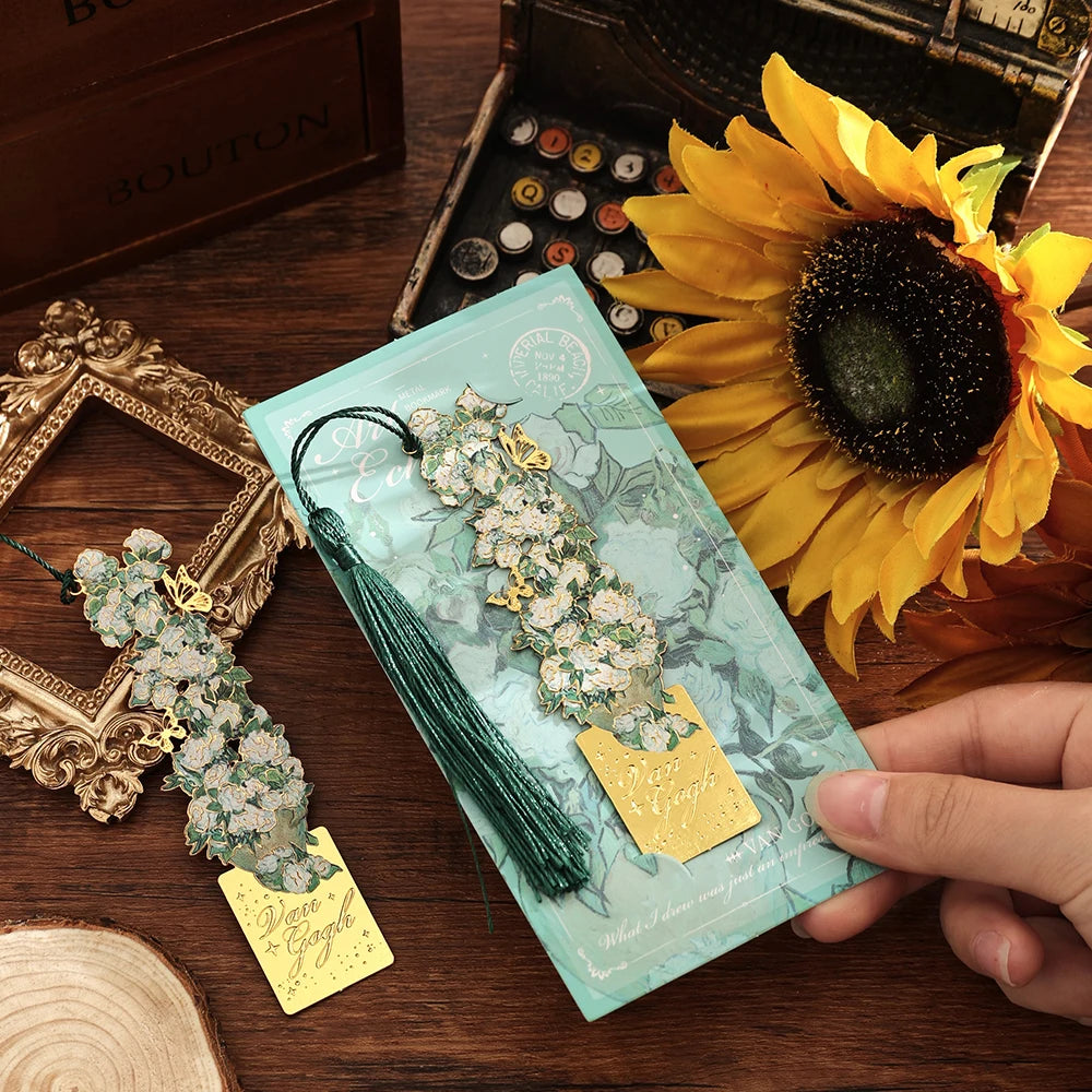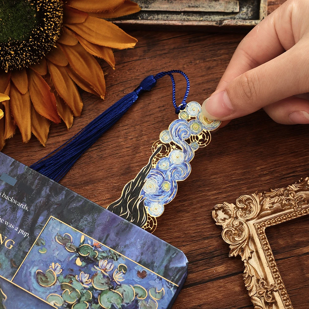 Vintage Artistic Metal Bookmark, Hollow Painting Design With Long Tassel For Office Book Lovers Reading Gift Stationery